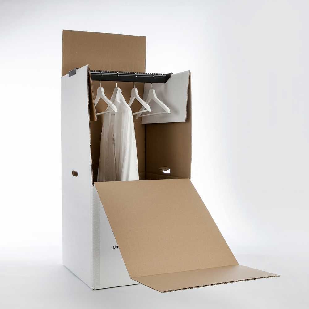 Lassen Sie für den Umzug Ihre Hemden und Jacken am Bügel und hängen Sie diese bequem in unseren Kleiderkarton.